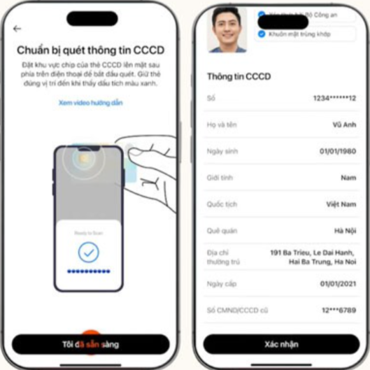 => Chờ ứng dụng kiểm tra CCCD, sau khi kiểm tra xong chọn “Hoàn tất kiểm tra“. Lúc này ứng dụng sẽ hiện thị các thông tin CCCD của bạn => chọn “Xác nhận“