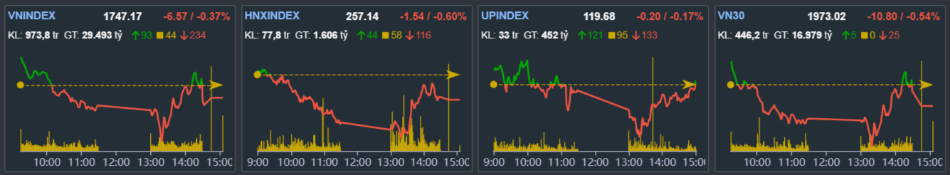 - VN-index Giảm -6.57 điểm xuống 1747.17 điểm