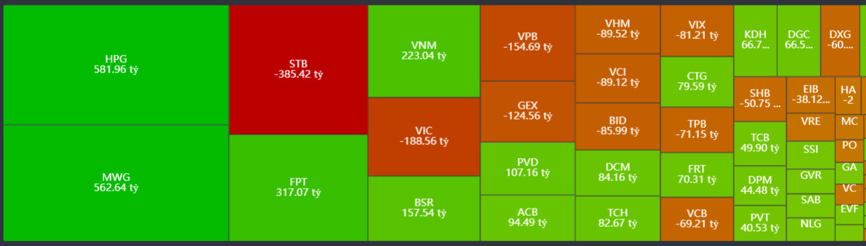 - Bán ròng tập trung: STB, VIC, VPB, GEX, VHM,…