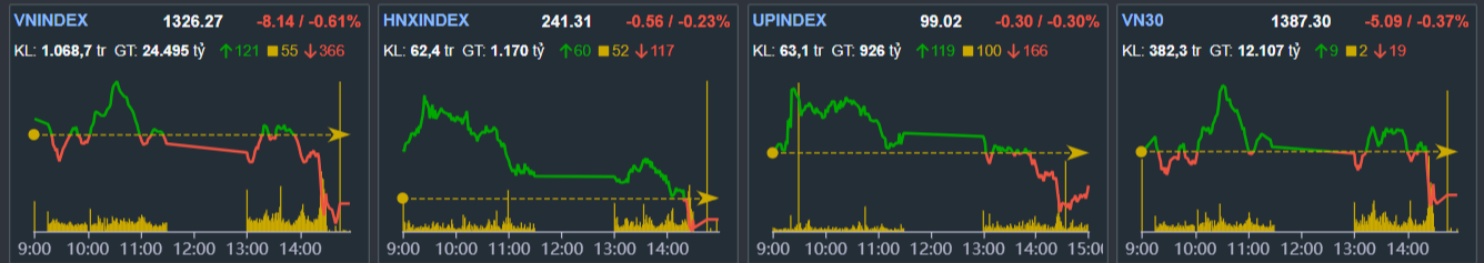 - VN-index Giảm -8.14 điểm xuống 1326.27 điểm