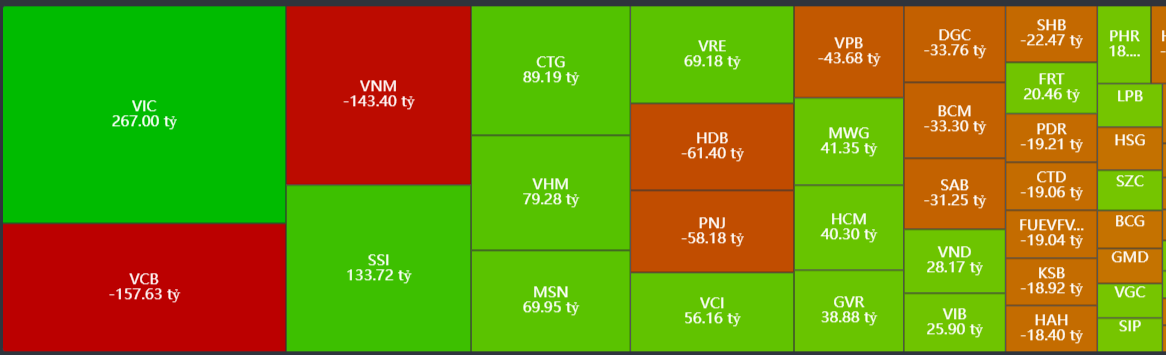- Mua ròng tập trung: VIC, SSI, CTG, VHM, MSN,…