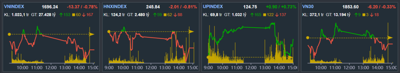 - VN-index Giảm -13.37 điểm xuống 1696.24 điểm