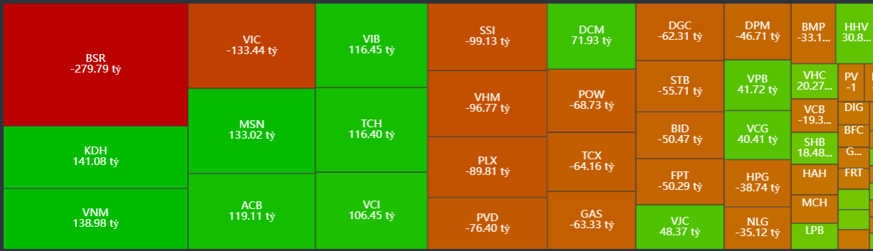 - Bán ròng tập trung: BSR, VIC, SSI, VHM, PLX,…