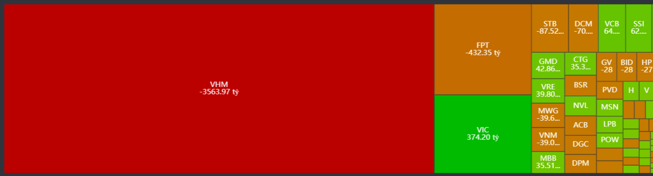 - Bán ròng tập trung: VHM, FPT, STB, DCM, GVR,…