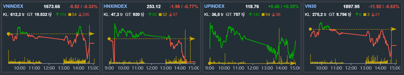 - VN-index Giảm -5.52 điểm xuống 1673.66 điểm