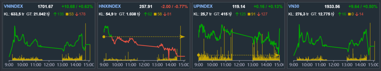 - VN-index Tăng 10.68 điểm lên 1701.67 điểm