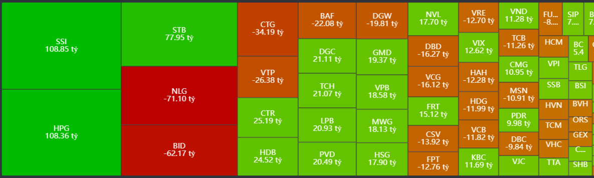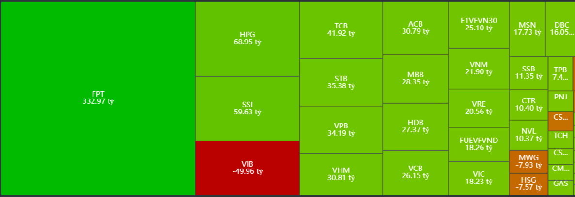 - Mua ròng tập trung: FPT, HPG, SSI, TCB, STB,…