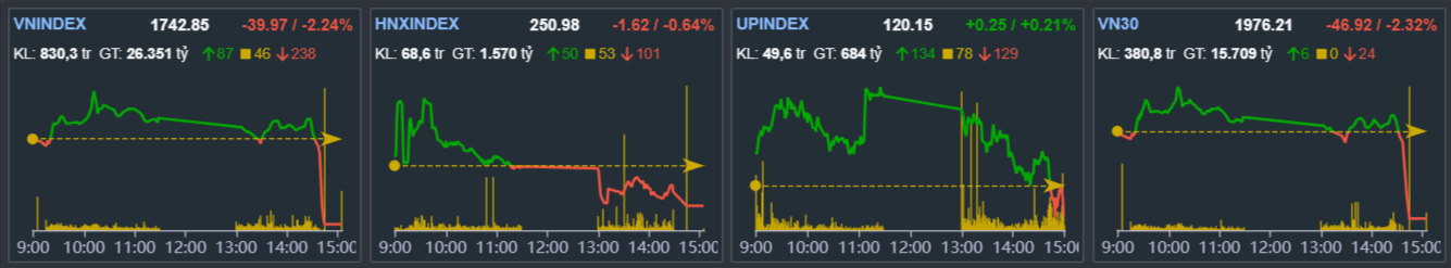 - VN-index Giảm -39.97 điểm xuống 1742.85 điểm