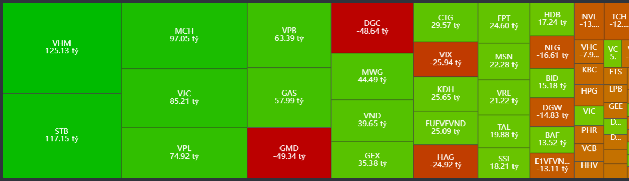 - Mua ròng tập trung: VHM, STB, MCH, VJC, VPL,…