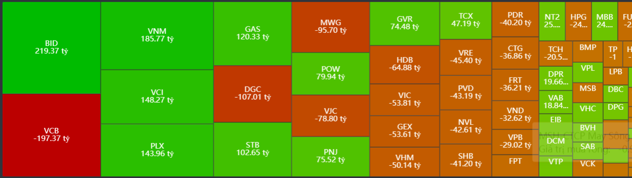 - Bán ròng tập trung: VCB, DGC, MWG, VJC, HDB,…