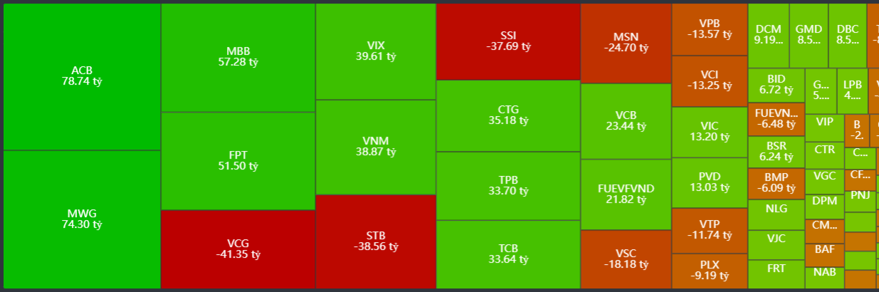 - Mua ròng tập trung: ACB, MWG, MBB, FPT, VIX,..