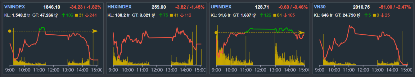 - VN-index Giảm -34.23 điểm xuống 1846.10 điểm