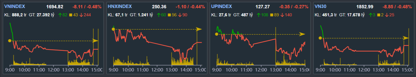 - VN-index Giảm -8.11 điểm xuống 1694.82 điểm