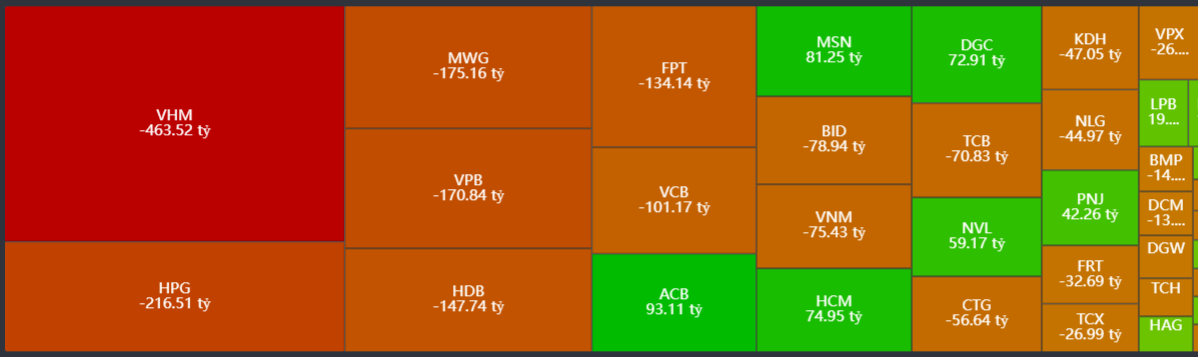 - Bán ròng tập trung: VHM, HPG, MWG, VPB, HDB…