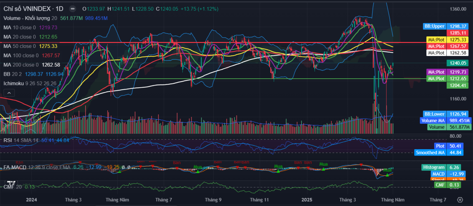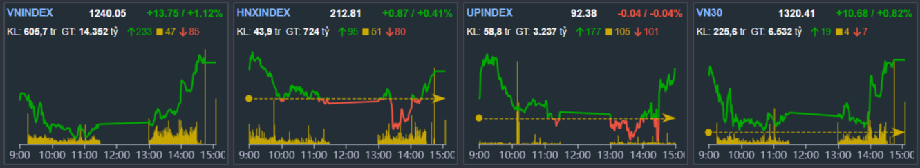 - VN-index Tăng 13.75 điểm lên 1240.05 điểm