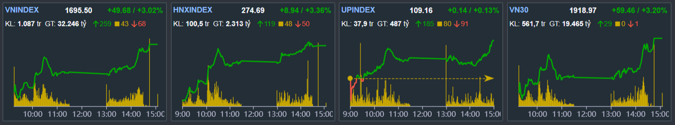 - VN-index Tăng 49.68 điểm lên 1695.50 điểm