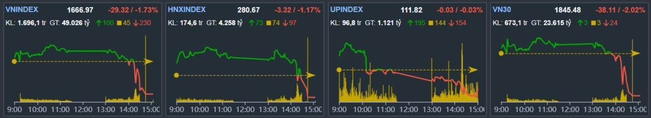 - VN-index Giảm -29.32 điểm xuống 1666.97 điểm