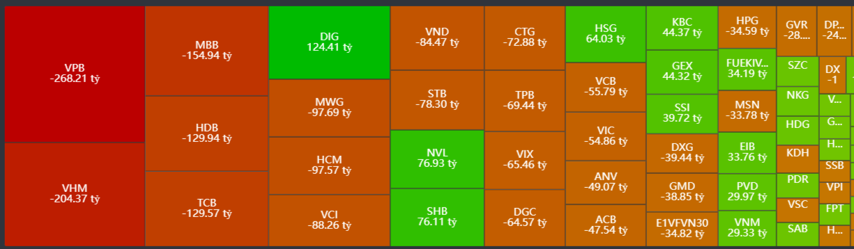 - Bán ròng tập trung: VPB, VHM, MBB, HDB, TCB,…