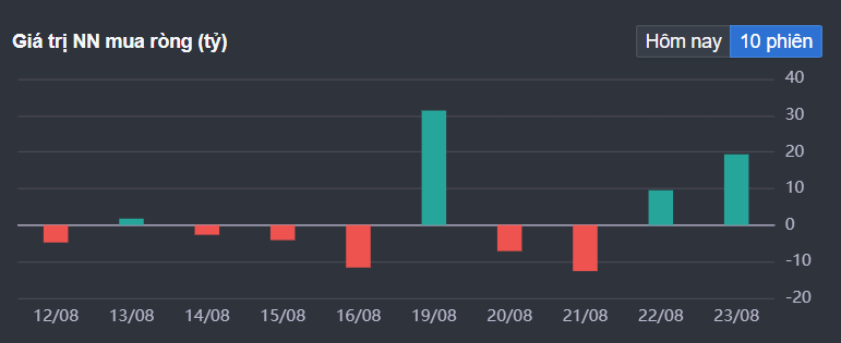 Biểu đồ giao dịch khối ngoại trên sàn Hose hôm nay và 9 phiên trước đó:
