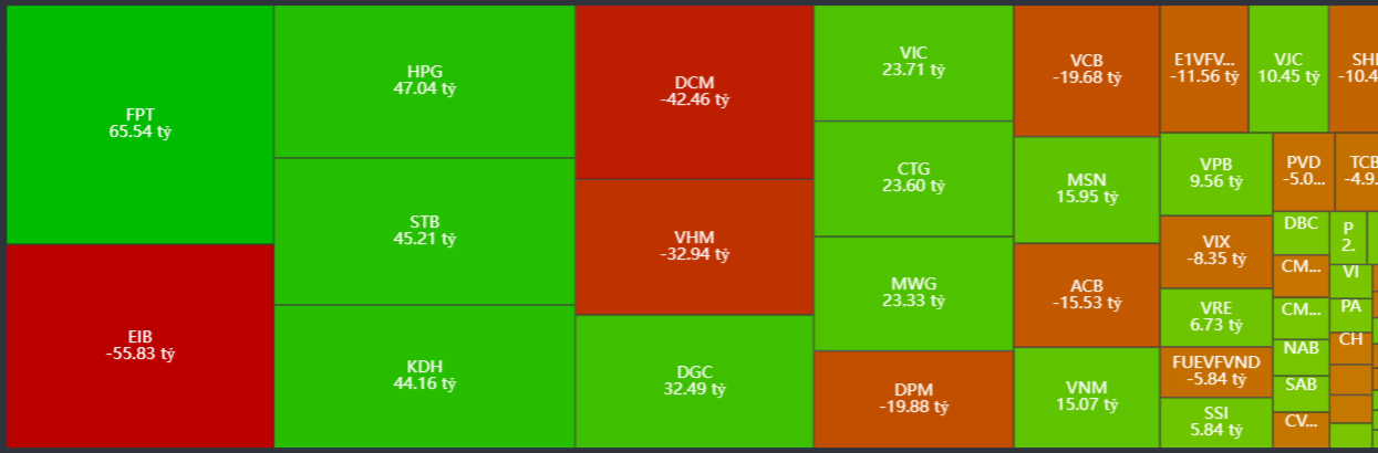 - Mua ròng tập trung: FPT, HPG, STB, KDH, DGC,..