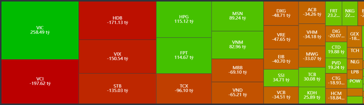 - Mua ròng tập trung: VIC, HPG, FPT, MSN, VNM…