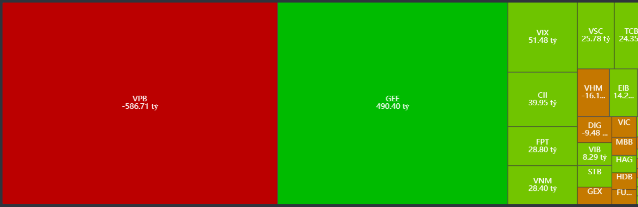 - Bán ròng tập trung: VPB, VHM, DIG, GEX, VIC,..