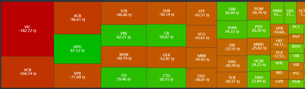 - Bán ròng tập trung: VIC, VCB, ACB, VPX, STB,…