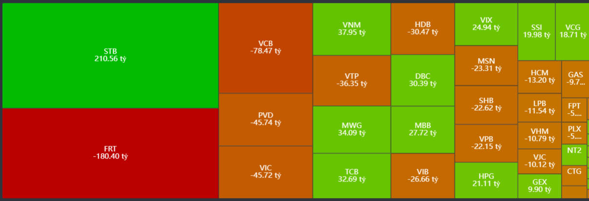 - Mua ròng tập trung: STB, VNM, MWG, TCB, DBC,..