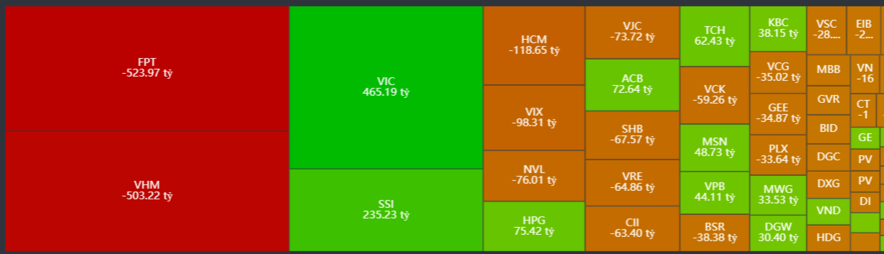 - Bán ròng tập trung: FPT, VHM, HCM, VIX, NVL,…