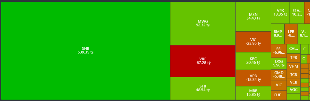 - Mua ròng tập trung: SHS, MWG, STB, MSN, KBC,..