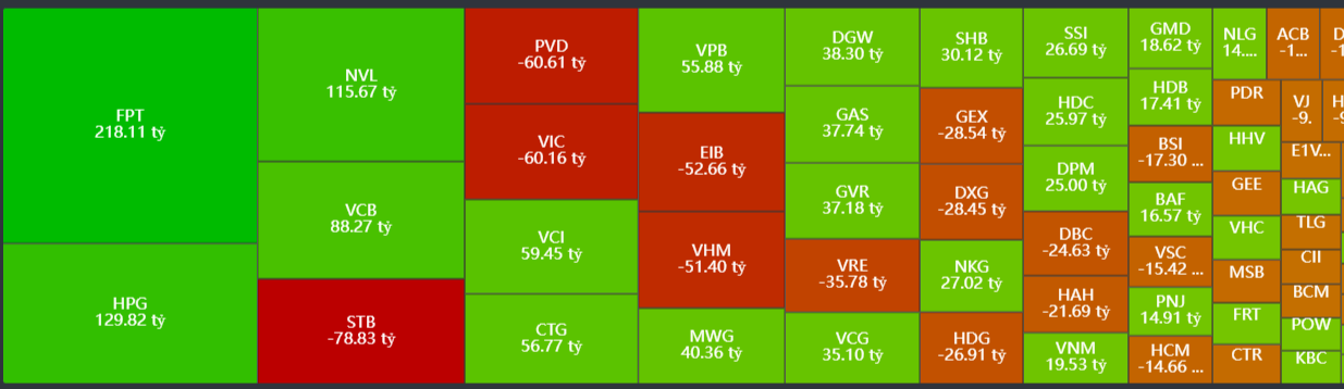 - Bán ròng tập trung: STB, PVD, VIC, EIB, VHM,…