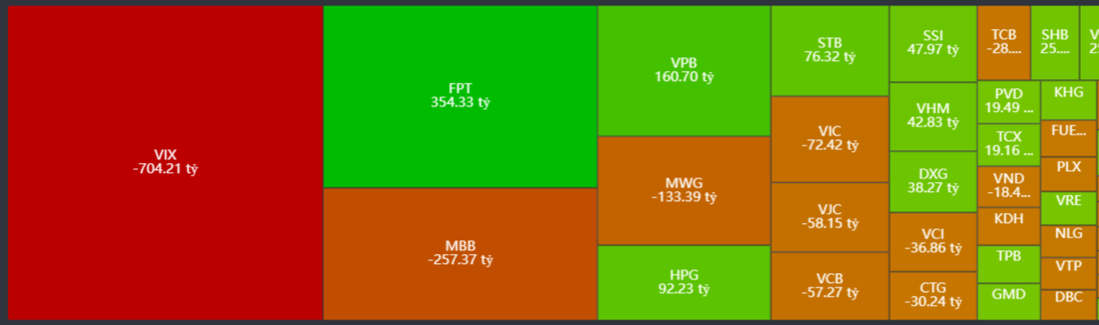- Bán ròng tập trung: VIX, MBB, MWG, VIC, VJC….