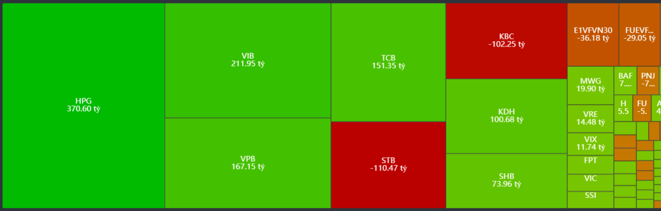 - Bán ròng tập trung: HPG, VIB, VPB, TCB, KDH,..