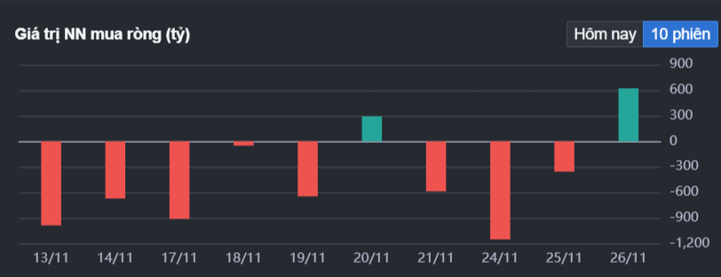 Giao dịch khối ngoại trên sàn HSX: MUA ròng 622.95 tỷ