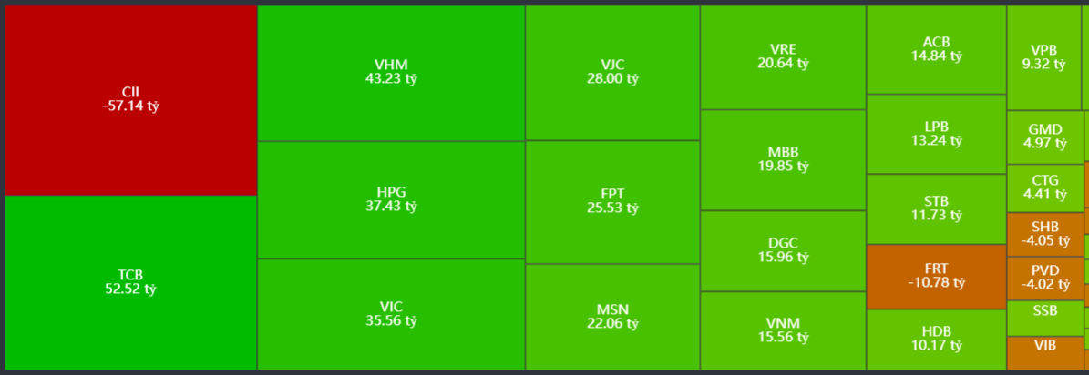- Mua ròng tập trung: TCB, VHM, HPG, VIC, VJC,..