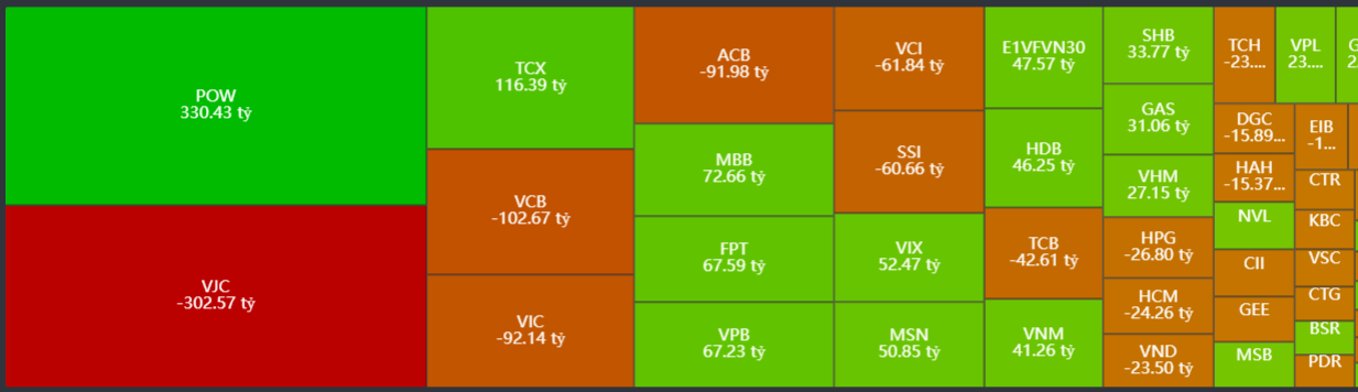 - Mua ròng tập trung: POW, TCX, MBB, FPT, VPB…
