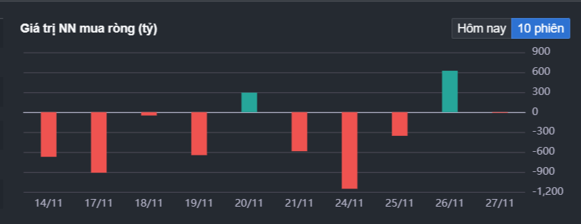Giao dịch khối ngoại trên sàn HSX: BÁN ròng -10.99 tỷ