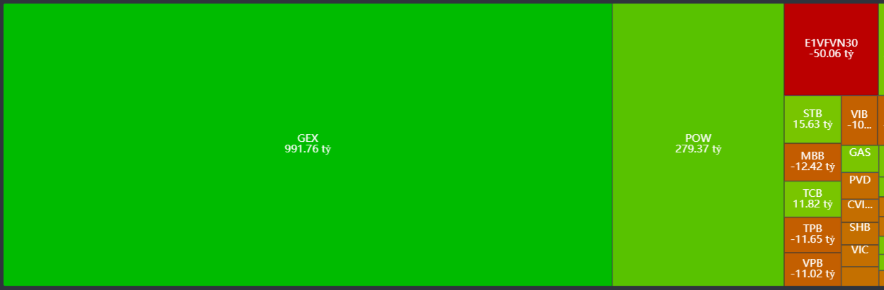 - Mua ròng tập trung: GEX, POW, STB, TCB, GMD,..