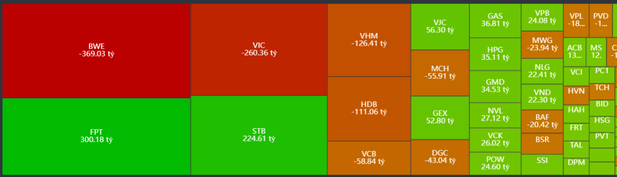 - Bán ròng tập trung: BWE, VIC, VHM, HDB, VCB,…