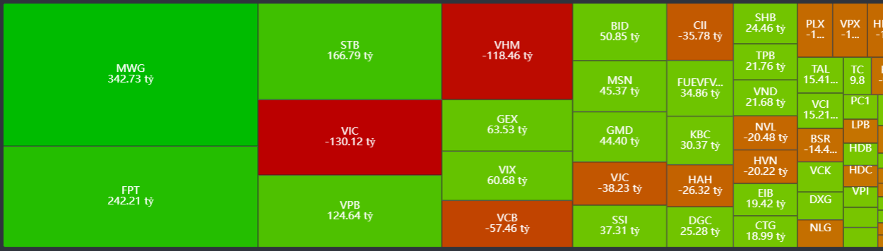 - Mua ròng tập trung: MWG, FPT, STB, VPB, GEX,…