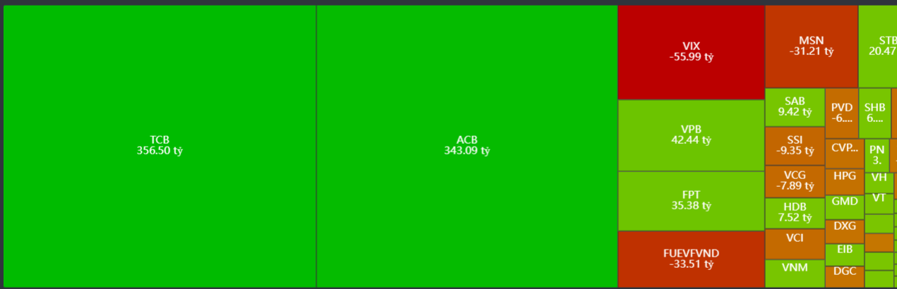 - Mua ròng tập trung: TCB, ACB, VPB, FPT, SAB,..