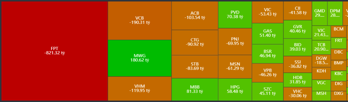 - Mua ròng tập trung: FPT, VCB, VHM, ACB, CTG,…