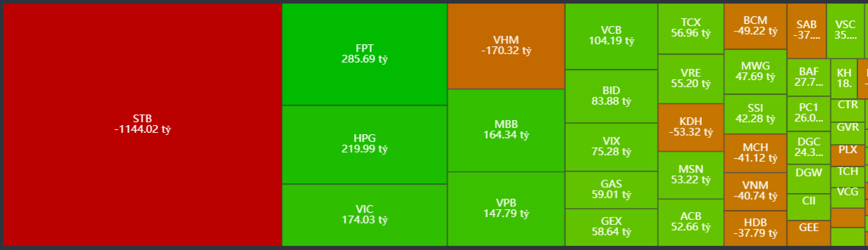 - Bán ròng tập trung: STB, VHM, KHD, BCM, MCH,…