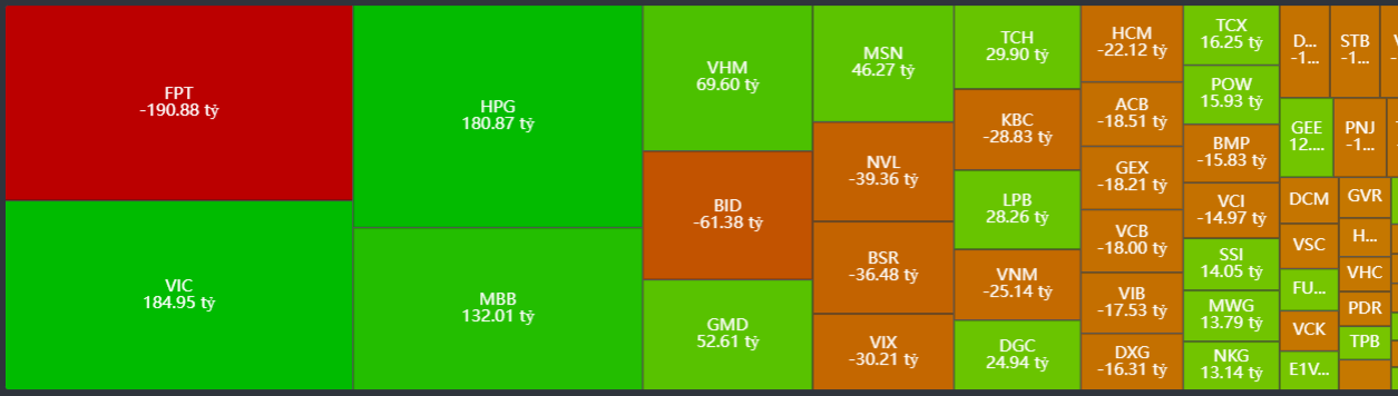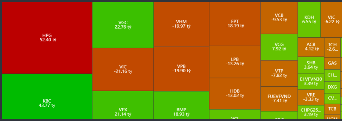 - Bán ròng tập trung: HPG, VIC, VHM, VPB, FPT,..