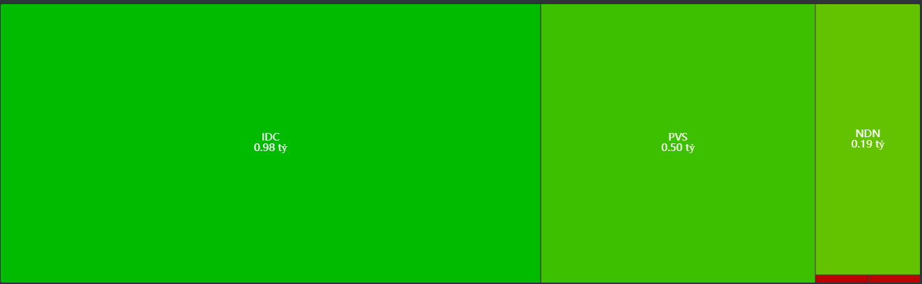 Trên sàn HNX, khối tự doanh đã mua ròng các mã cổ phiếu như IDC, PVS, và NDN. Sự mua ròng này thể hiện sự quan tâm của khối tự doanh đối với các mã thuộc nhóm dầu khí và bất động sản.