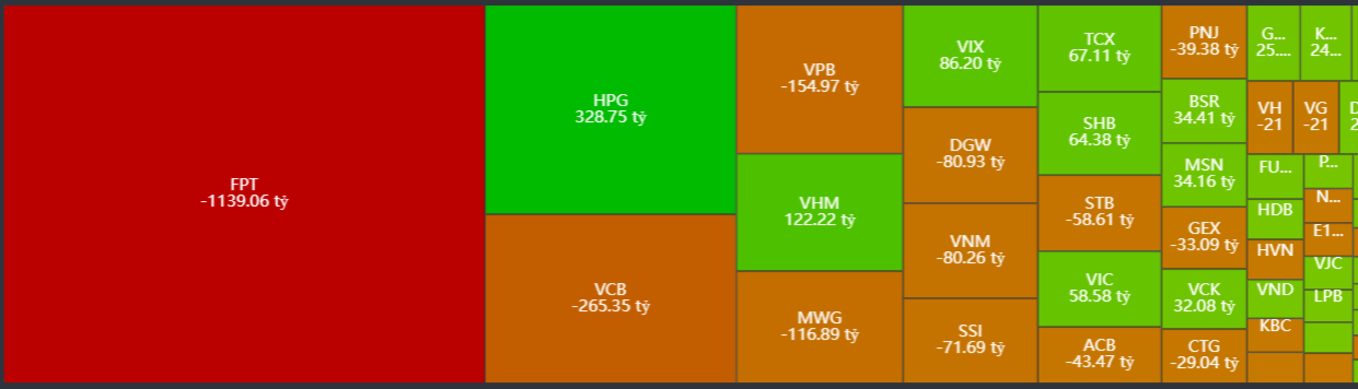 Bán ròng tập trung: FPT, VCB, VPB, MWG, DGW,…