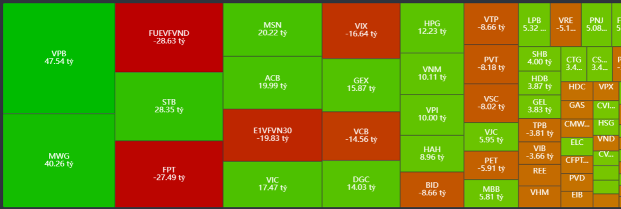 Mua ròng tập trung: VPB, MWG, STB, MSN, ACB, VIC,..