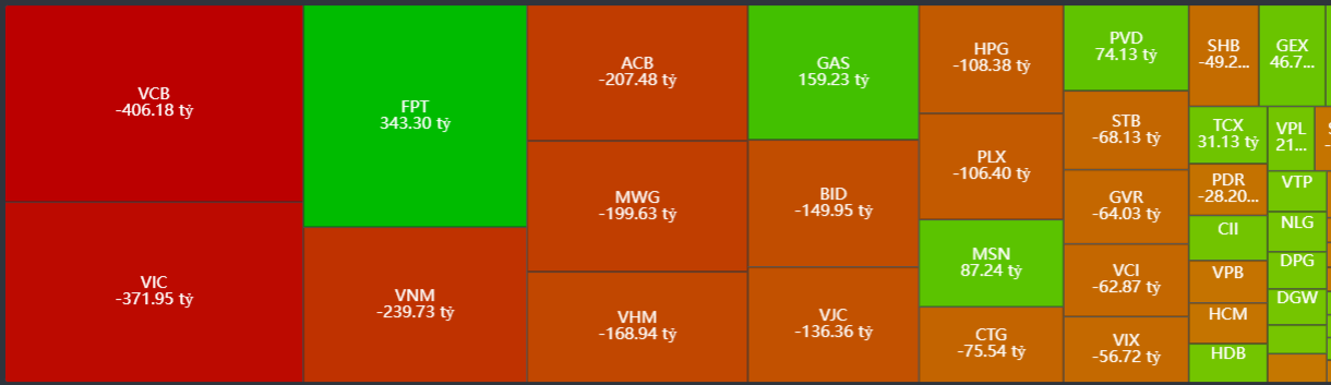 - Bán ròng tập trung: VCB, VIC, VNM, ACB, MWG,…