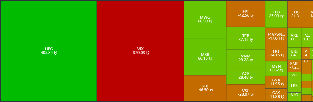 - Mua ròng tập trung: HPG, MWG, MBB, TCB, VNM,..