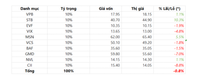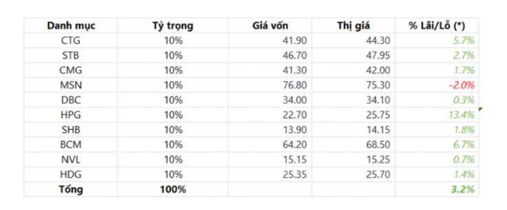Danh mục này thể hiện chiến lược lựa chọn cổ phiếu linh hoạt, tận dụng các cơ hội từ thị trường giằng co và duy trì khả năng sinh lời bền vững trong năm 2025. Nhà đầu tư nên theo dõi sát các yếu tố vĩ mô và tín hiệu kỹ thuật để điều chỉnh danh mục kịp thời, đặc biệt trong các giai đoạn thị trường biến động mạnh.